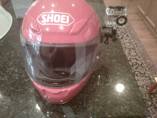 There's that pink helmet again! and shit. I just picked up a Shoei Hornet Dual sport in Black. It's a bad mutha fucka!
